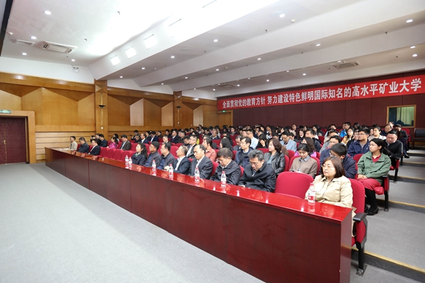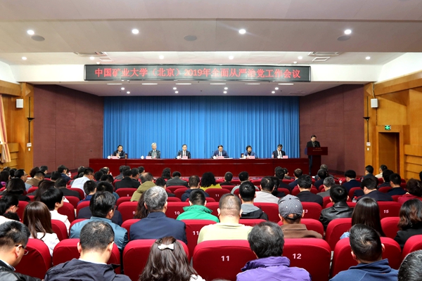 徐孝民指出,2019年是新中国成立70周年,“五四”运动100周年,也是学校建校110周年。我们要以习近平新时代中国特色社会主义思想为指导,深入学习贯彻全国教育大会精神、习近平总书记在十九届中央纪委三次全会上的重要讲话精神和全会工作部署,进一步用“四个意识”导航、用“四个自信”强基、用“两个维护”铸魂,加强党对学校工作的全面领导,进一步推进全面从严治党工作向纵深发展。重点做好四项工作:一要坚持把党的政治建设放在首位,切实抓好思想组织建设;二要不断加强作风建设,驰而不息贯彻落实中央八项规定精神;三要加强重点领域监督检查,将全面从严治党工作落到实处;四要落实主体责任,全面推进从严治党各项工作。他强调,我们要以习近平新时代中国特色社会主义思想为指导,全面贯彻落实党的十九大精神和全国教育大会精神,贯彻落实好中央和教育部、北京市关于全面从严治党的各项决策部署,实施学校“落地行动计划”,写好矿大“奋进之笔”,攻坚克难,狠抓落实,坚定不移把全面从严治党引向深入,以优异的成绩迎接中华人民共和国成立70周年和建校110周年华诞。